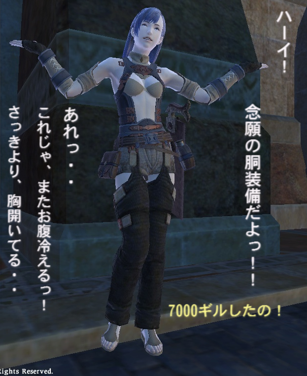 ハーネス系っですね。FF11でも、こんな装備着てたなぁ・・